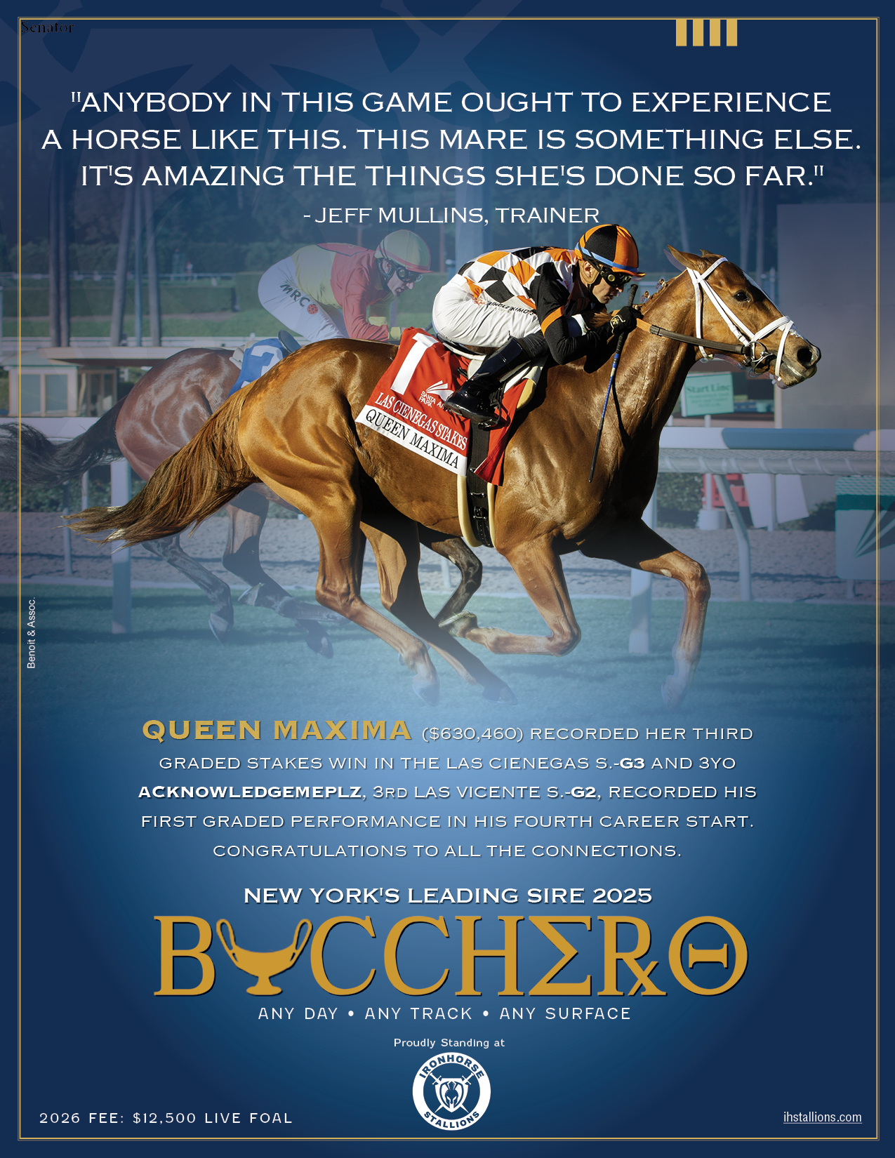 Bucchero's standout performer, proving elite genetics on racing's biggest stages. (click here for more)